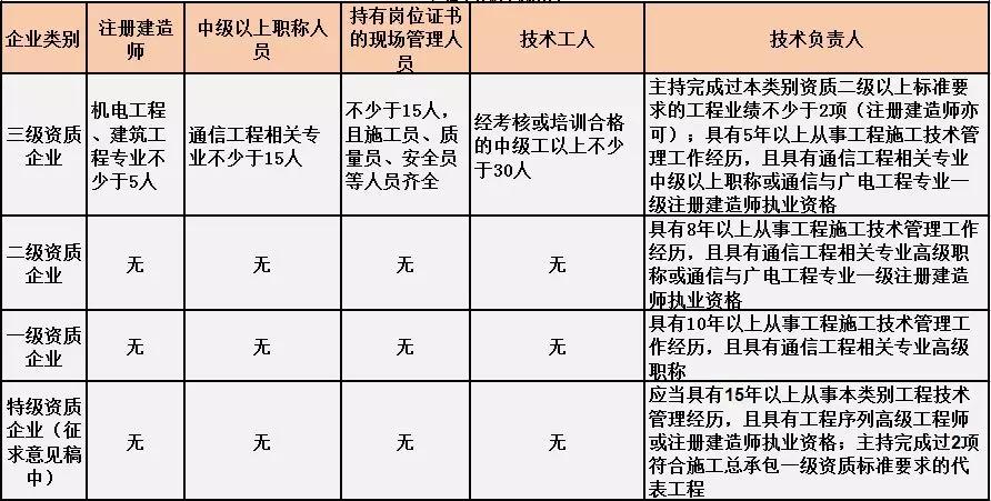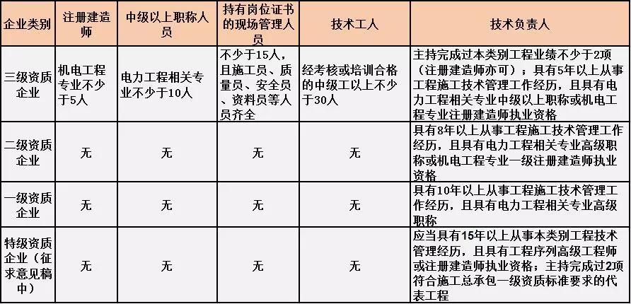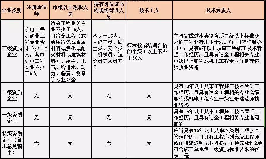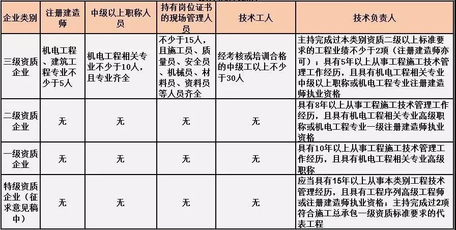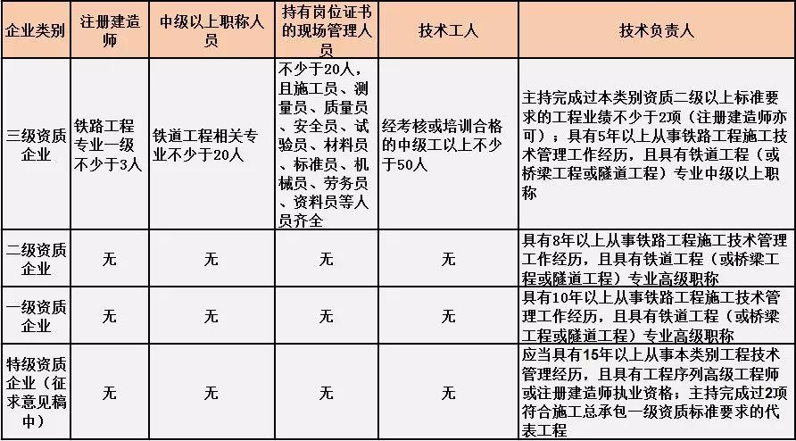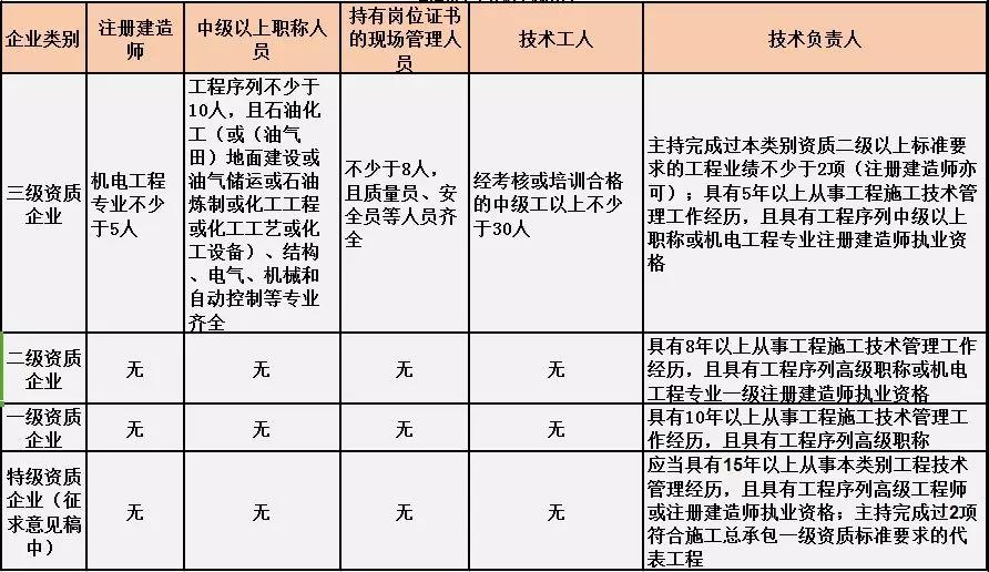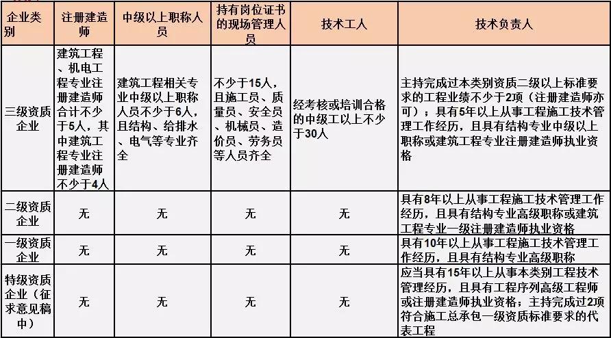 換句話(huà)說(shuō),并不是所有企業(yè)資質(zhì)都不要求有建造師等企業(yè)人員。施工總承包三級資質(zhì)企業(yè)對建造師等人員仍有要求,一級資質(zhì)、二級資質(zhì)企業(yè)保留技術(shù)負責人這一項要求,特級資質(zhì)另有規定。